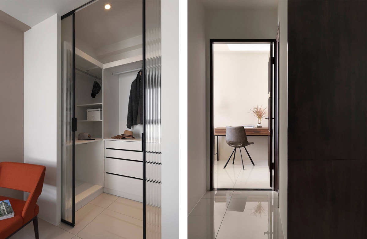Цвет фасадов кухни и шкафов в коридоре максимально близок к цвету стен: такой прием расширяет пространство, системы хранения «растворяются» в нем и почти незаметны.