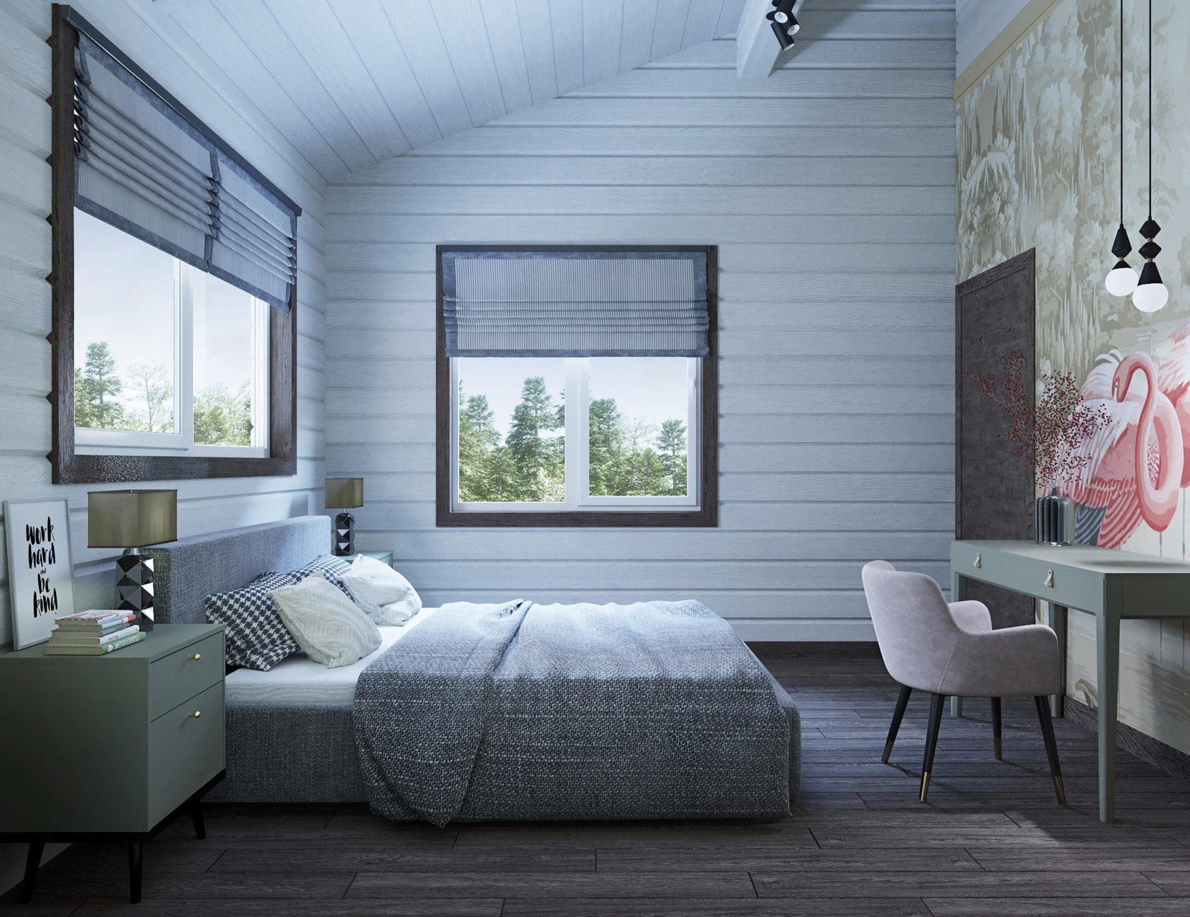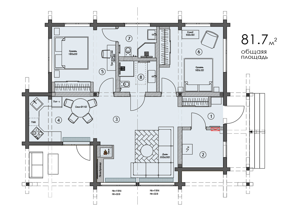Дизайн-проект загородного дома из бруса. Это второй дом на территории участка героев проекта. И он предназначен для гостей.