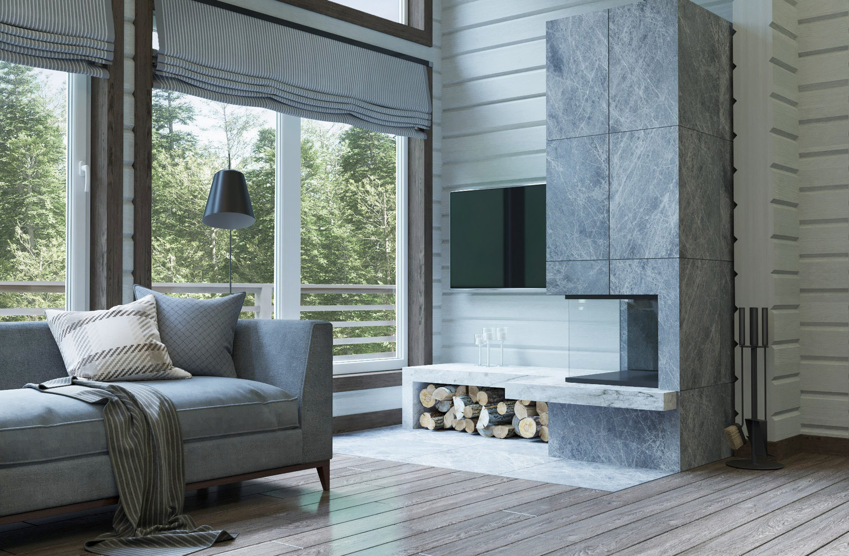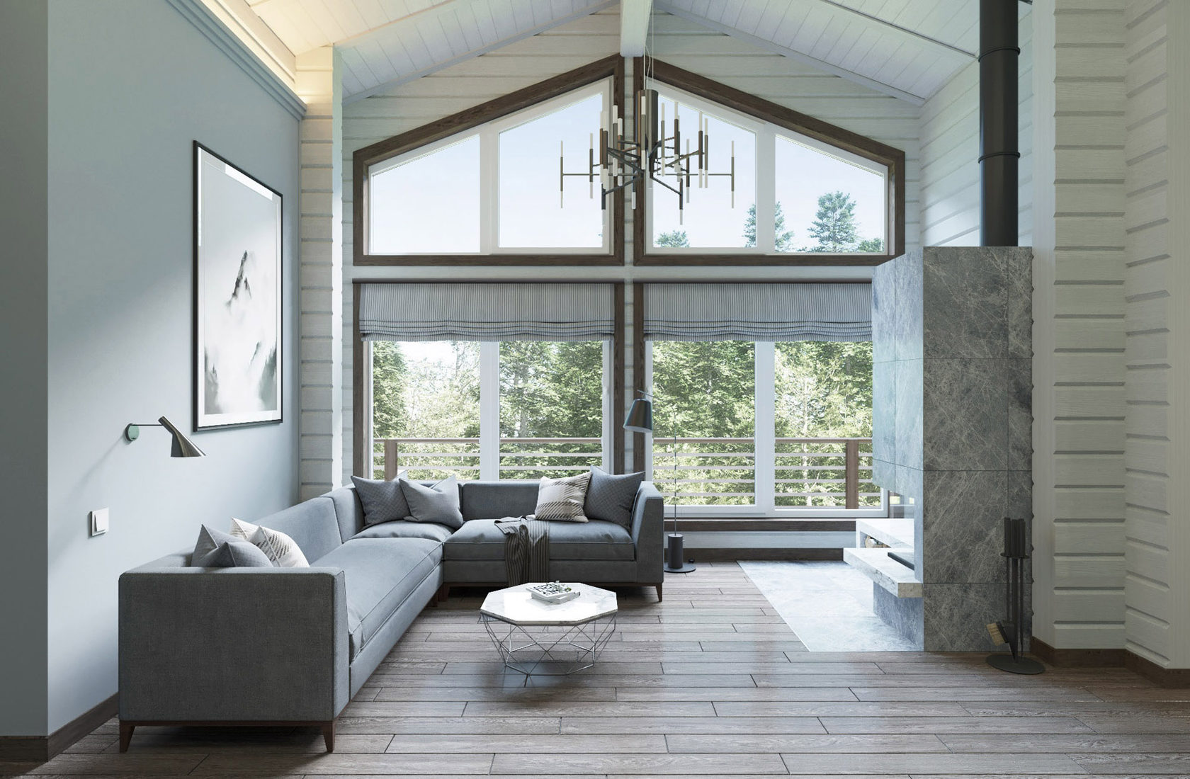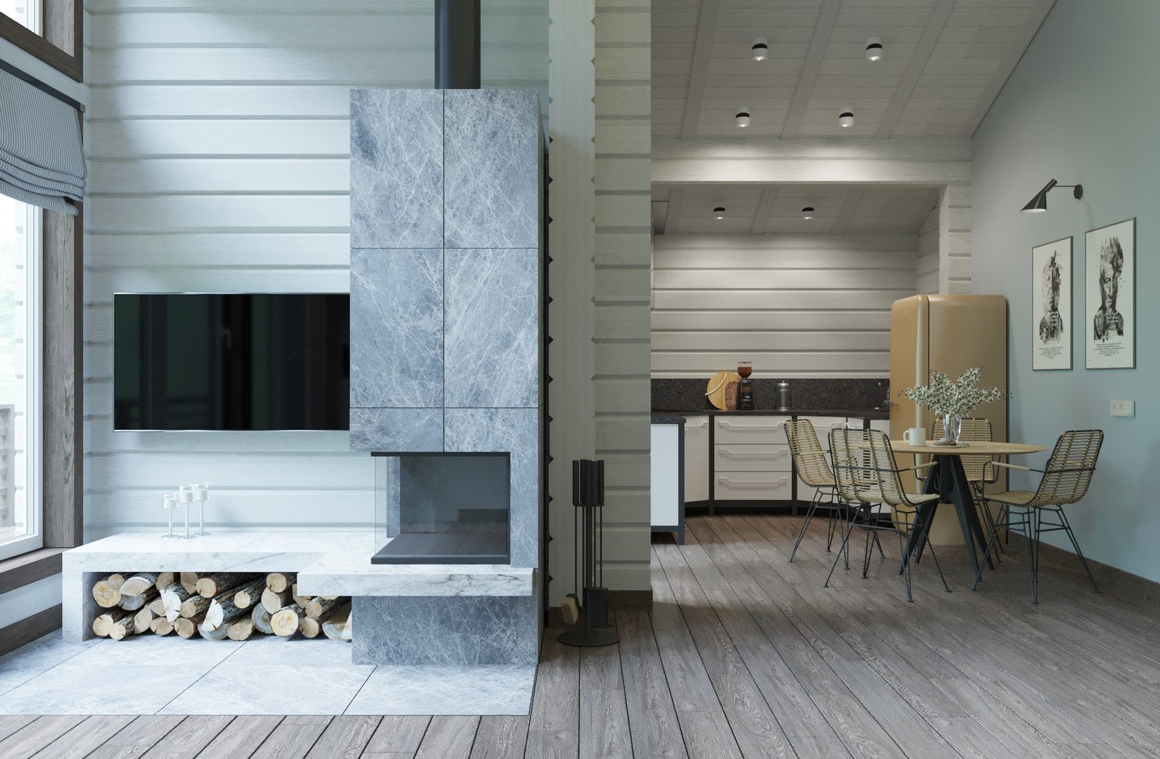 Дизайн интерьера загородного дома из бруса