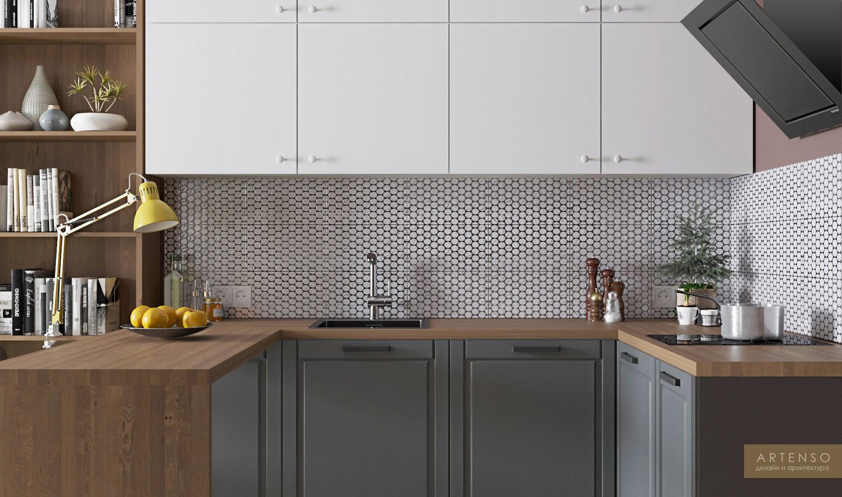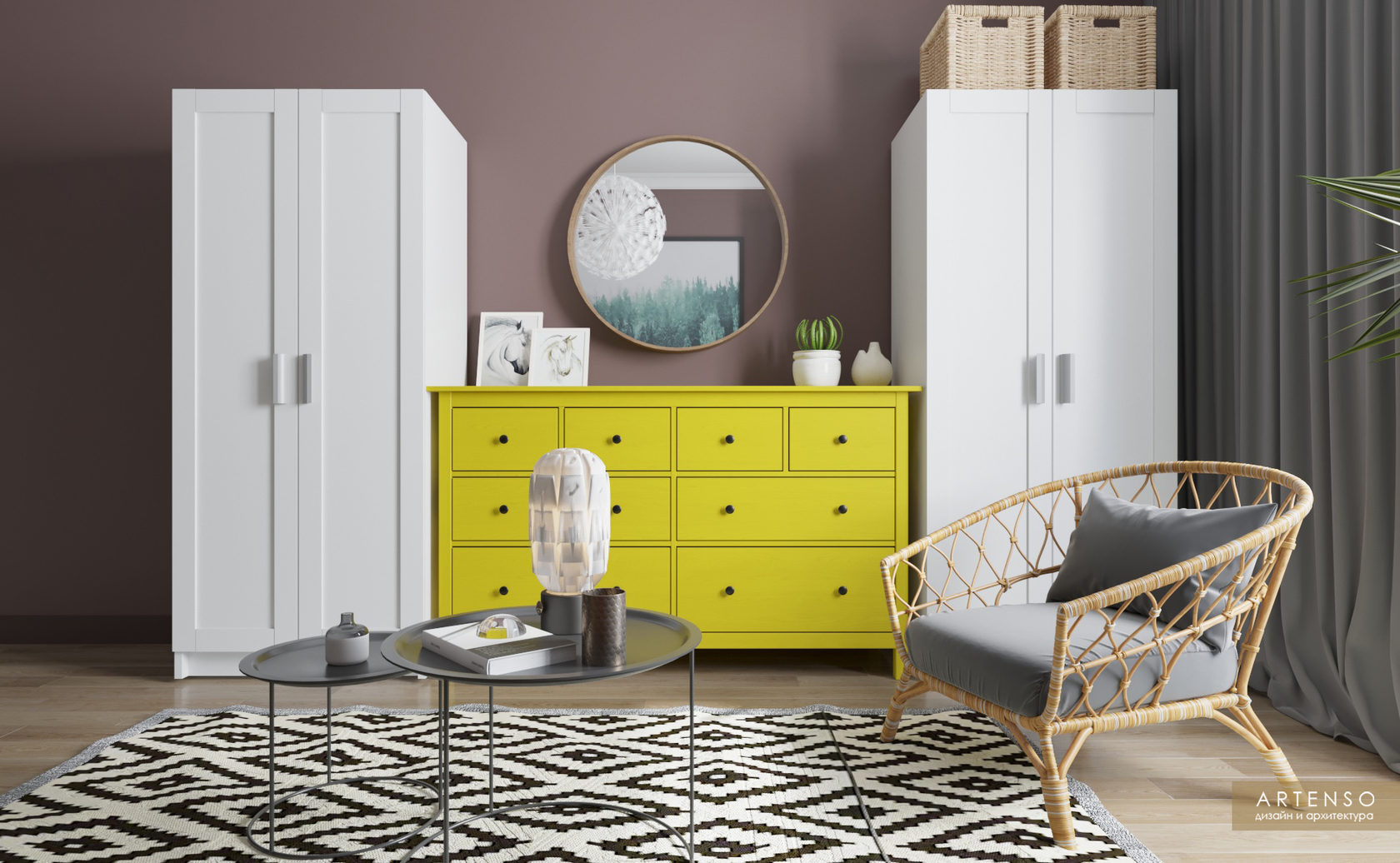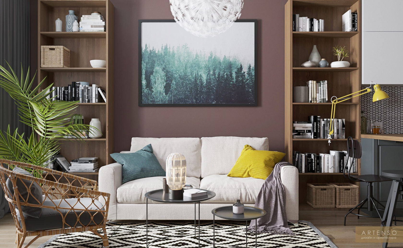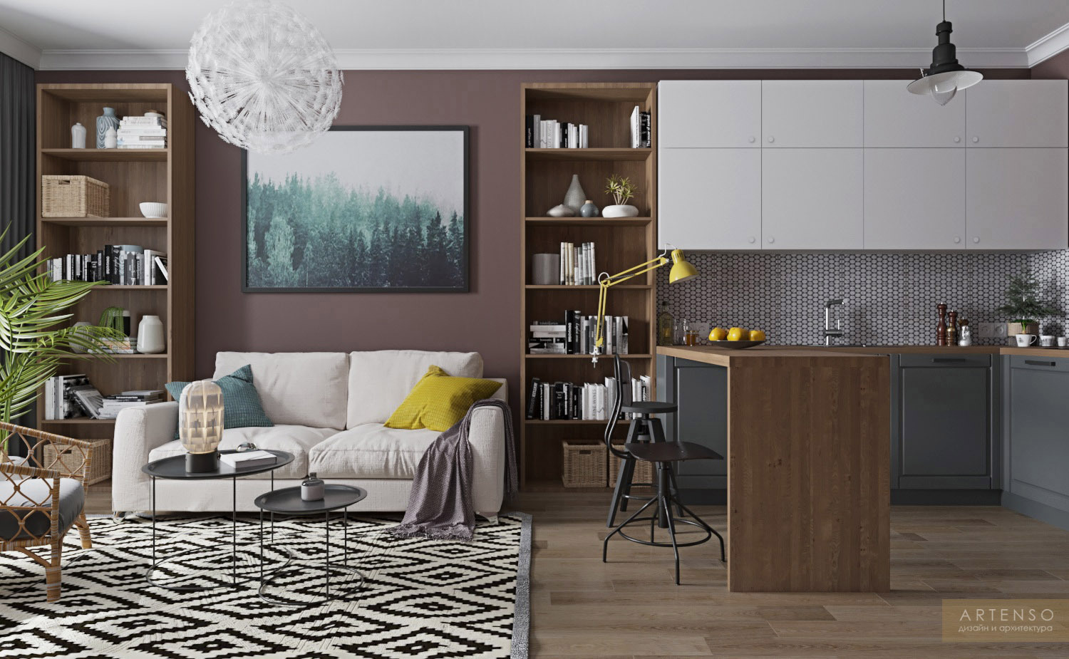 Дизайн-проект небольшой студии с мебелью из Икеи.