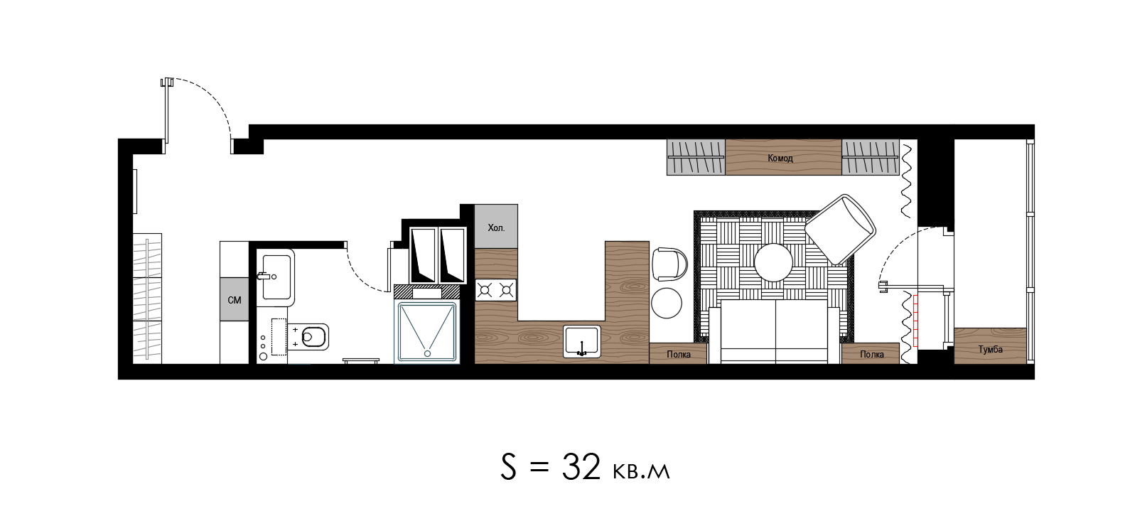 Дизайн интерьера студии, ЖК До Ре Ми