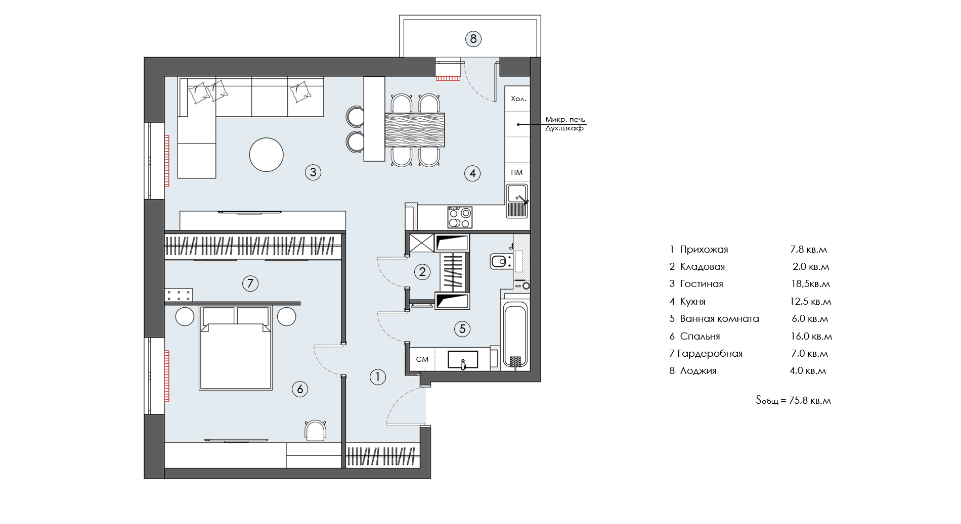 Двухкомнатная квартира для семейной пары.